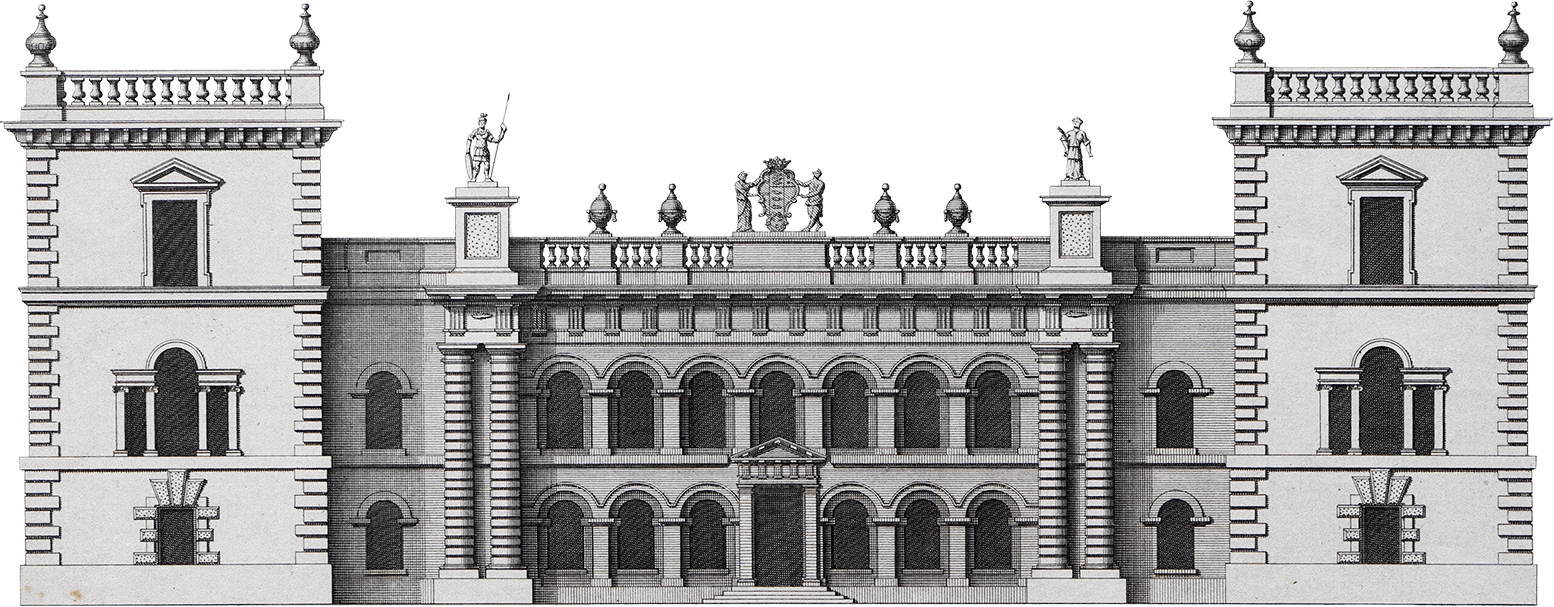Vanbrugh’s last big house was for Admiral Sir George Delaval on his family estate east of Newcastle. Seaton Delaval is an immensely bold, highly original design, — a stronghold for the family and a suitable reminder of Vanbrugh’s flamboyant imagination.